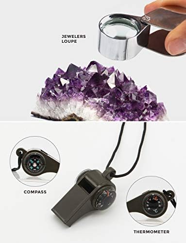 1.Worth Bundle: Include a 32 oz. rock choose hammer, 3 pcs of rock chisels, shovel, shepherd's pipe bag and three in a single whistle(thermometer, compass), jewelers loupe, velvet luggage, wood chisels and scrub brush, eyeglasses and gloves. All of the gear that may you want.